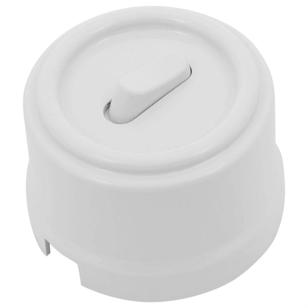 Кнопка белого цвета, с возвратно-нажимным механизмом, специально изготовлена для наружного монтажа.