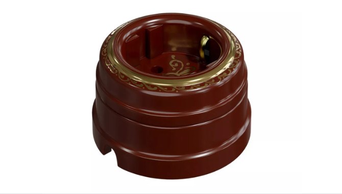 Ретро розетка фарфоровая с золотой росписью, двухполюсная с заземляющим контактом и подъемной рамкой, для наружного и внутреннего* монтажа.