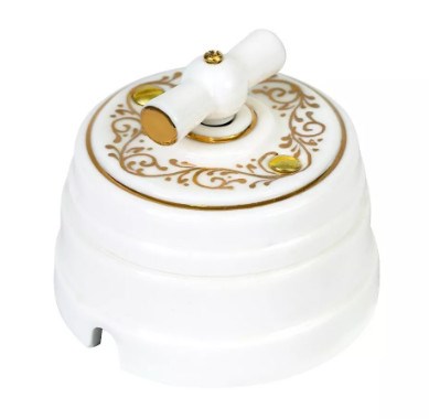 Фарфоровый переключатель для скрытой и открытой ретро проводки Мезонин. Характеристики: 10А/250В~, IP20, D70х60мм.