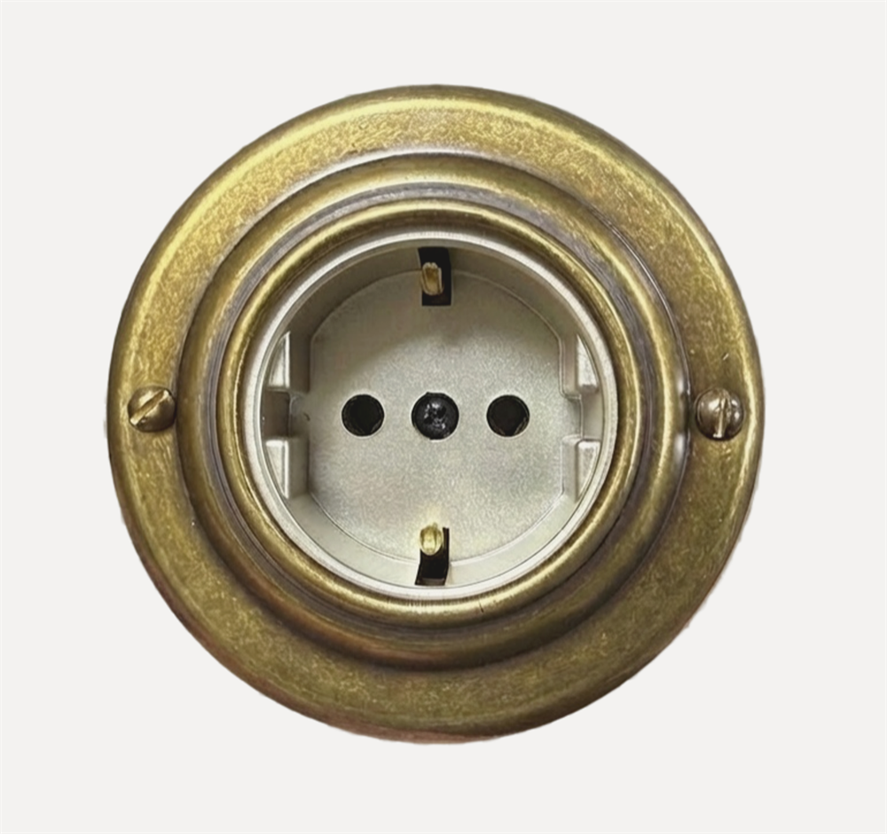 Розетка 16 А с заземлением, вставка Шампань, латунь.