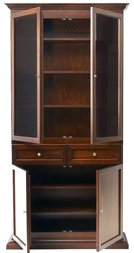 Шкафы серии "Онегин" могут компоноваться в "стенки" на общий цоколь и карниз и могут быть выполнены по индивидуальному заказу. Максимальный размер "стенки" до трех двухстворчатых шкафов. Шкафы поставляются собранными секциями.