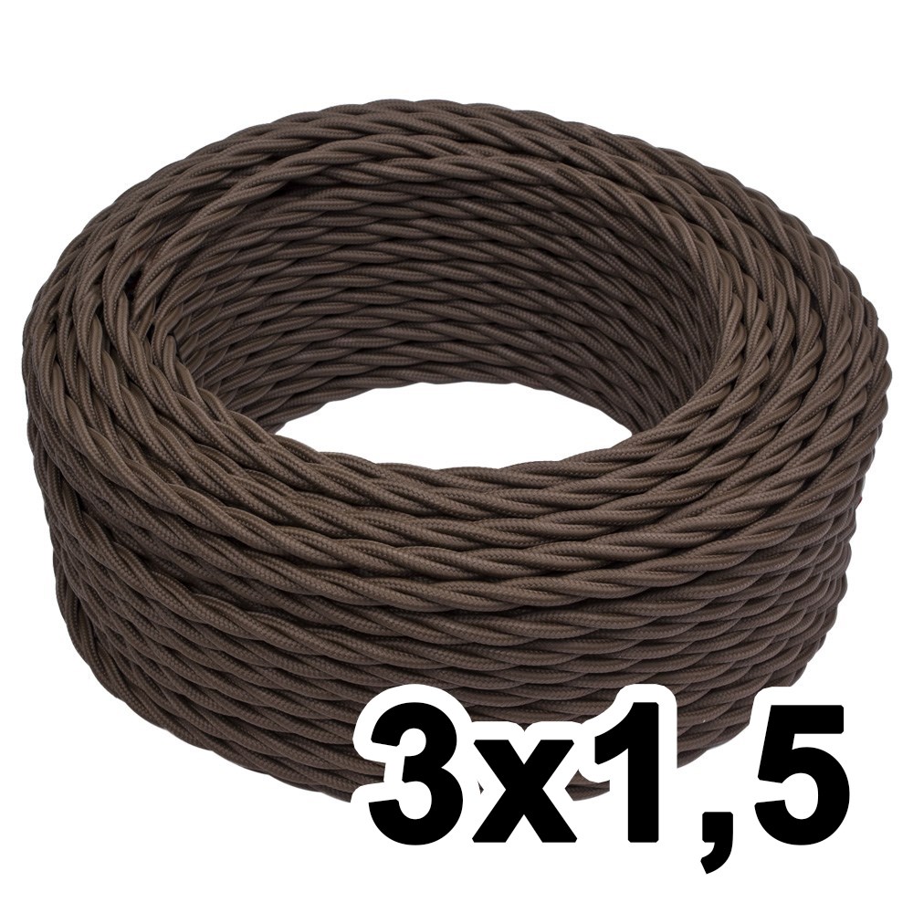 Витой провод трехжильный, 3х1.5, 220В, 10м, коричневый, Jantera, JTW.731.TM02.010