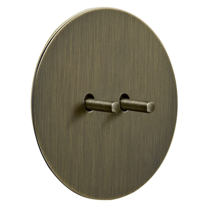 Выключатель 2-х тумблерный, проходной, бронза, Salvador, EU030103B02. Выключатель предназначен для внутреннего монтажа и рассчитан на стандартные российские подрозетники. Форма тумблера "цилиндр".