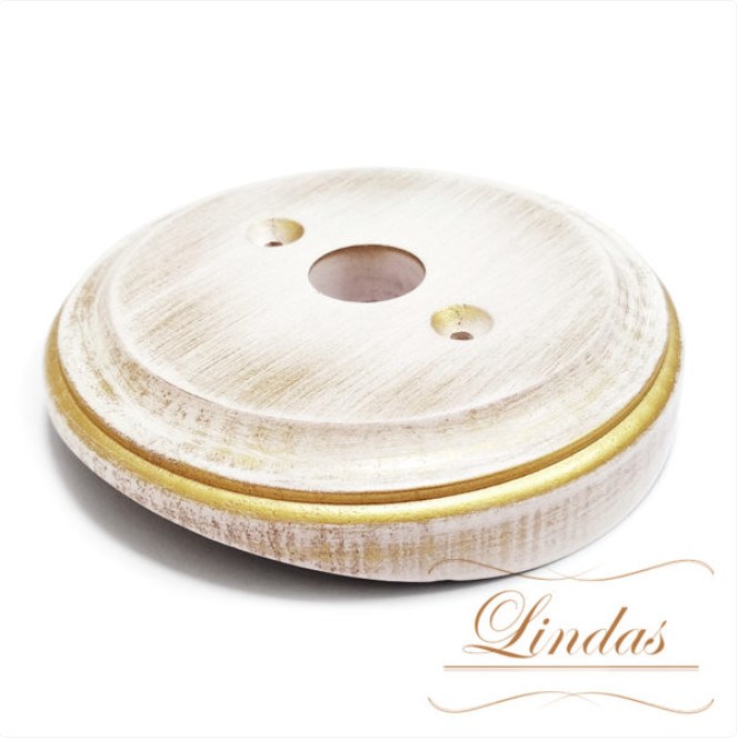 Рамка д/распредкоробки на бревно, Белый патина золото Lindas 25866 предназначена для монтажа на поверхность бревна или блок-хаус розеток и выключателей ретро. Изготовляется одного размера под диамметры бревна 220- 240 мм.