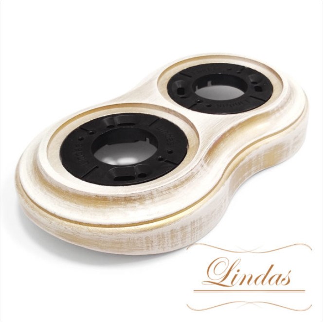 Рамка на бревно 2-х местная, Белый патина золото Lindas 25666 предназначена для монтажа на поверхность бревна или блок-хаус розеток и выключателей ретро. Изготовляется одного размера под диамметры бревна 220- 240 мм.