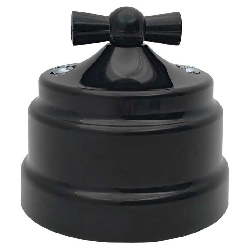 Ретро выключатель поворотный, проходной 1-клавишный, пластик, черный, Bylectrica А6 10-2296 черный. Для установки на ровную поверхность стены и специальные пластиковые подложки подложки.