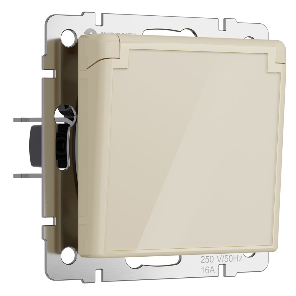 Розетка влагозащ. с зазем. с защит. крышкой и шторками (айвори акрил) W1171243