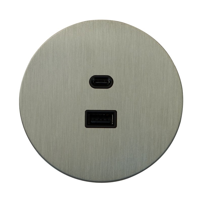 USB розетка (тип A+C), никель, Salvador, EU010112