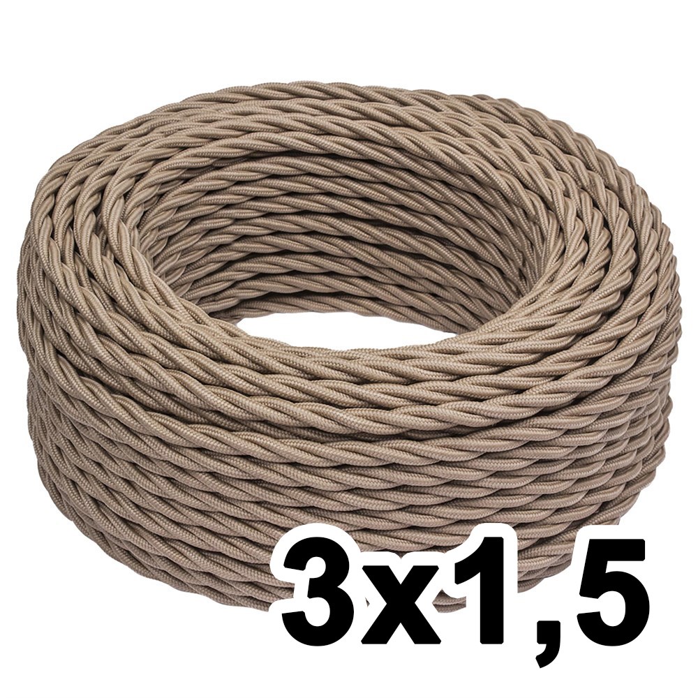 Витой провод трехжильный, 3х1.5, 220В, 50м, амбра, Jantera, JTW.731.TM06.050